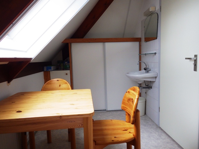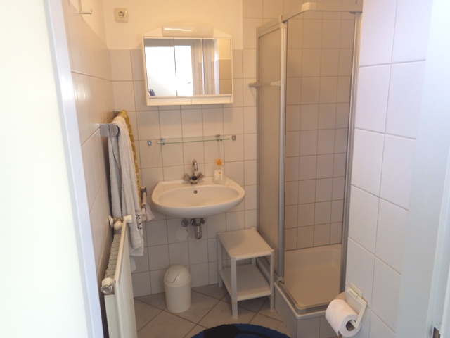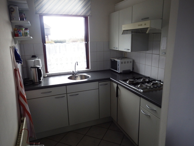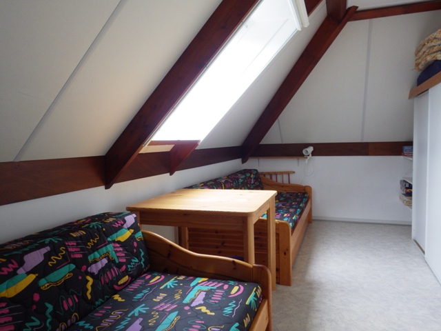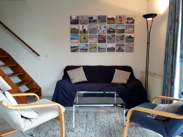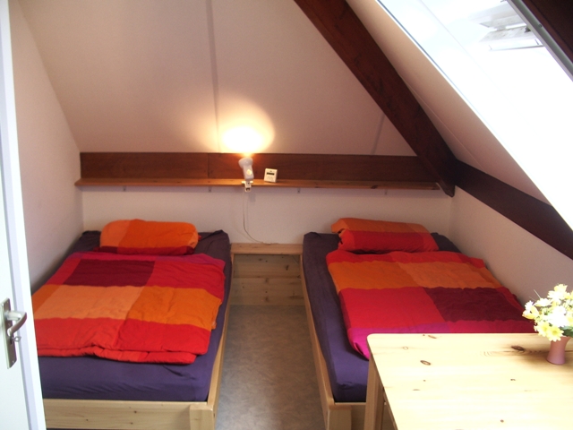 Die Wohnung teilt sich am Eingang. Gleich links das Bad mit Toilette und Dusche. Von der kleinen Diele kommen Sie in den Wohnraum mit angegliederter L-förmiger Küche. Über eine offene Treppe erreichen Sie die beiden Schlafräume. Jeder Raum bietet Platz für 2 bzw. 3 Personen. In beiden Schlafräumen finden Sie ein zusätzliches Waschbecken. Das Haus ist komplett für 5 Personen eingerichtet. Kinderbett und Hochstuhl sind ebenfalls vorhanden.
